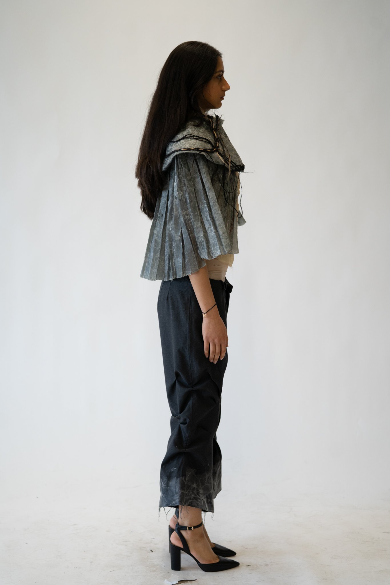 This collection is as much about craft as it is about catharsis. Made during a time of personal mourning, The Art of Mourning honors grief as a generative force, one that ties us to each other, and to the past. In weaving hair and memory into each piece, I offer garments that are intimate archives, preserving the quiet traces of relationship, love, and collective memory.
