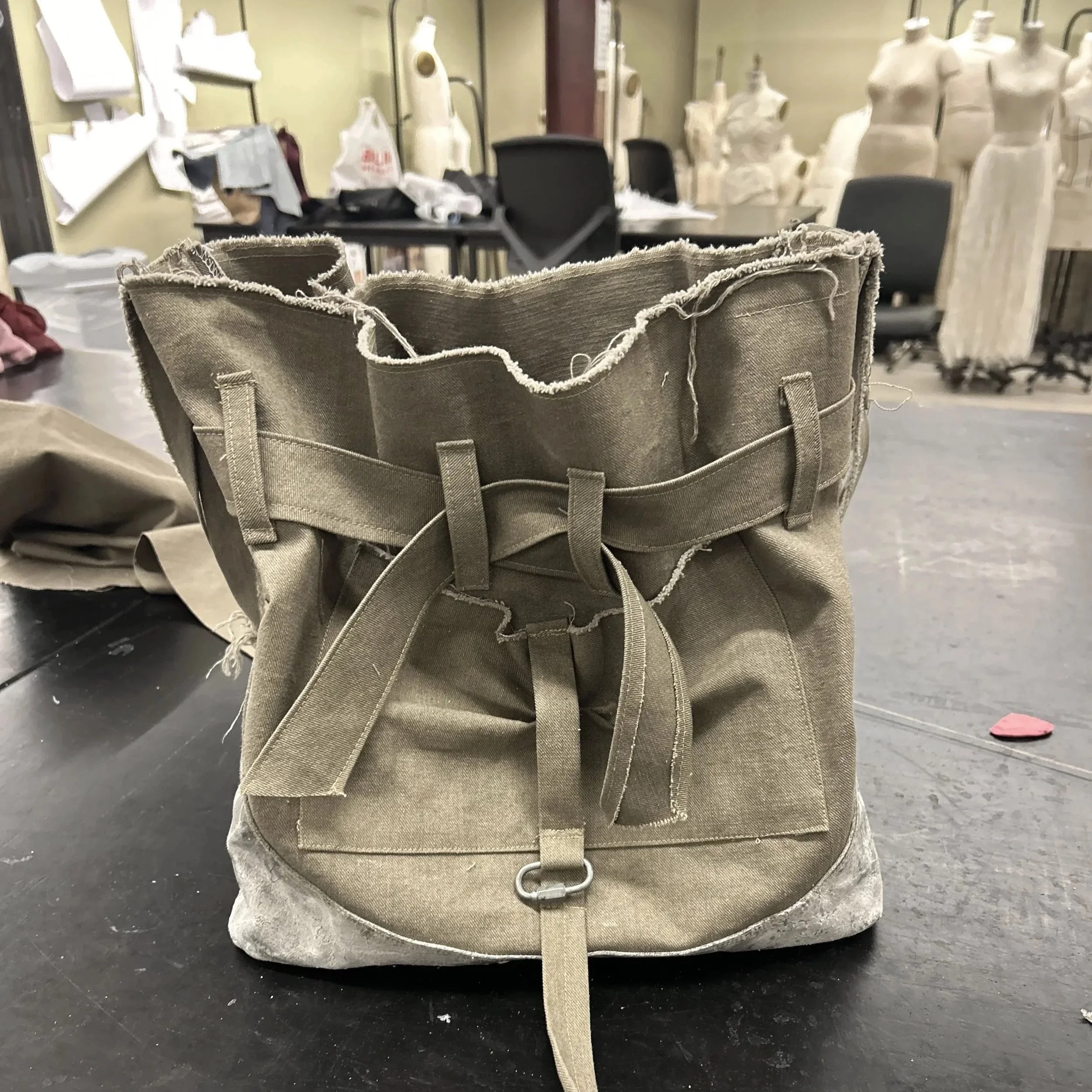 I was inspired to use a textile technique that I developed during my senior thesis collection in a wearable accessory. I challenged myself to design, pattern and construct this bag in one day. It is made of cotton canvas and repurposed hardware. Today, the Waxed Tote is used everyday and is in beautiful condition.